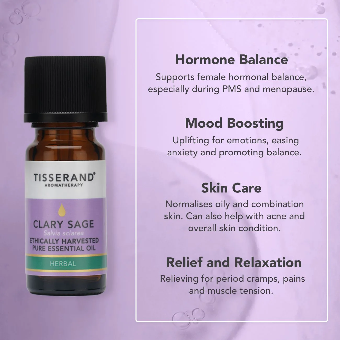 Clary Sage essential oil has a soft, warm, hay-like scent with nutty, woody undertones. Its rich, supportive aroma helps to promote emotional balance and uplift the spirit, making it particularly useful when you’re feeling low, irritable or overwhelmed. It’s known for supporting female wellbeing and boosting self-esteem.