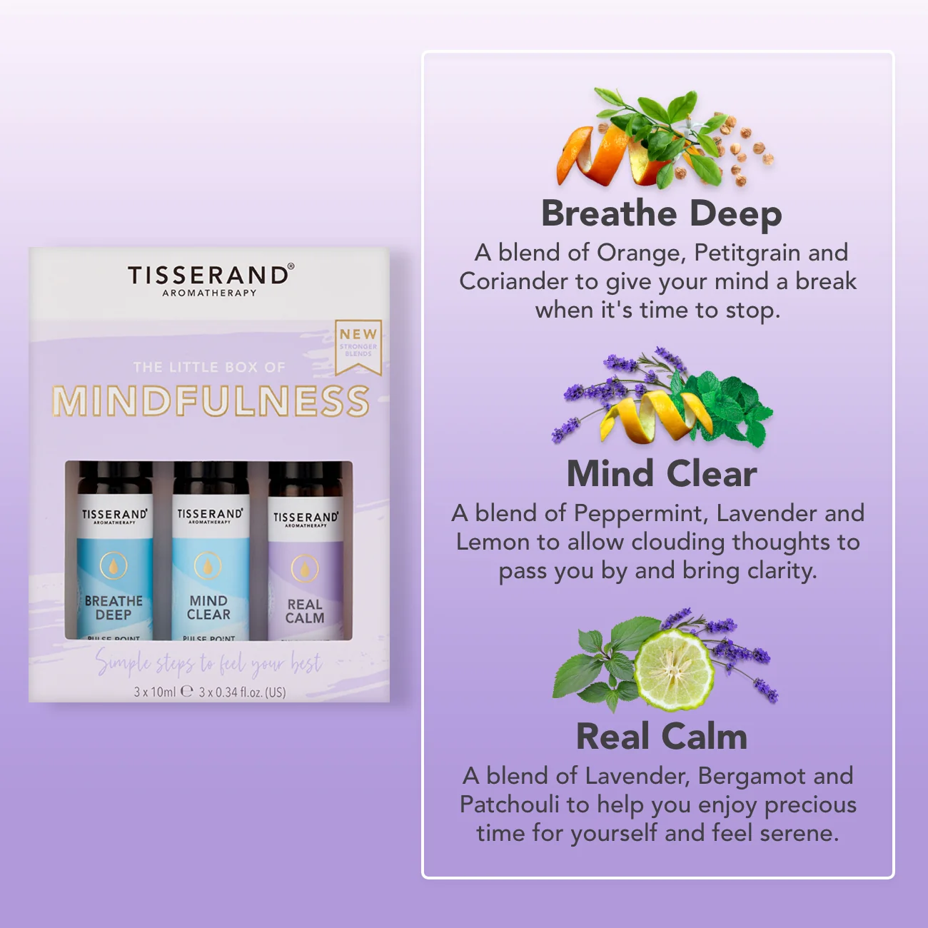 Pause, reset and reconnect with yourself with The Little Box of Mindfulness. This roller ball set features three pulse point roller balls, expertly blended with 100% natural pure essential oils to help you slow down, clear your mind and feel more present when life starts moving too fast.
